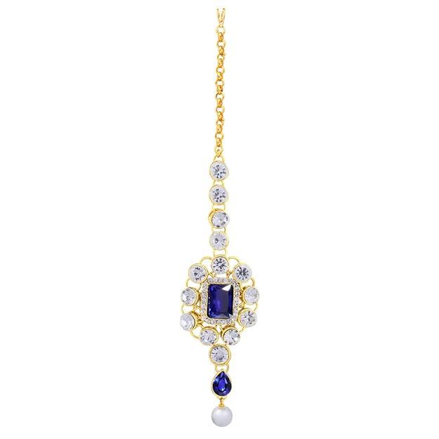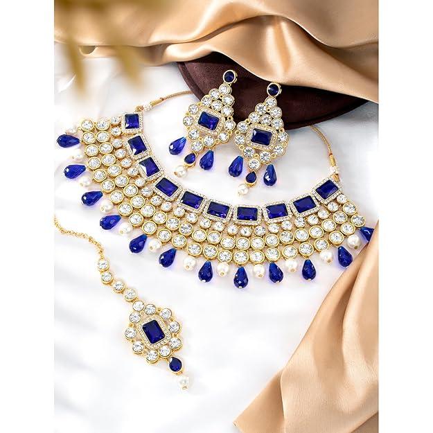 Crystal Choker Necklace with Maang Tikka Earrings Indian Traditional Bridal Wedding Jewellery Set for Women