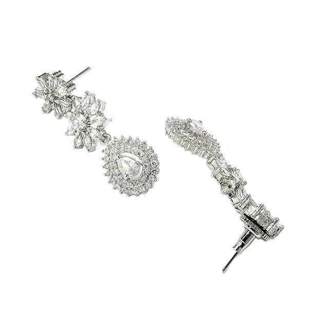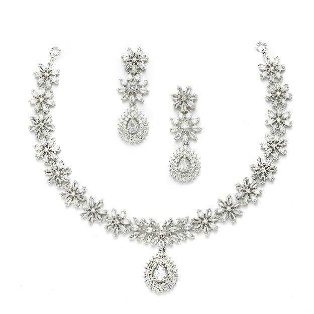 Rhodium-Plated with Silver-Toned Floral Design White American Diamond Studded Jewellery Set